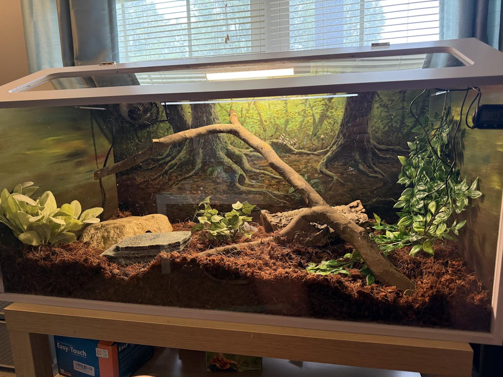 The Sahara Cage offers long-term usability due to its resilient, waterproof PVC construction, eliminating the issue of pet waste seeping into wood like other cages. The ample display space with a full-length detachable acrylic front panel and ready-to-view hinged top acrylic window provide the perfect habitat for your pet.  PVC (waterproof) construction and maximized ventilation, the cage features multiple air inlets on the sides and back. Classy and polished, it is ideal for a variety of small animals and Reptiles including Tortoises, Iguanas and Lizards.  Some assembly required.