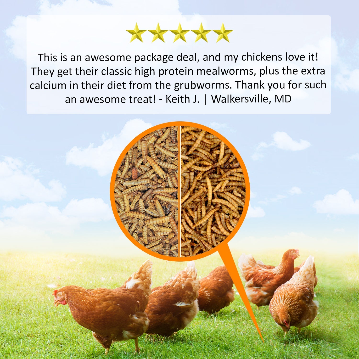 - Includes (1) Dried Mealworms 11 lb. bag & (1) Grub-Worms 5 lb. bag