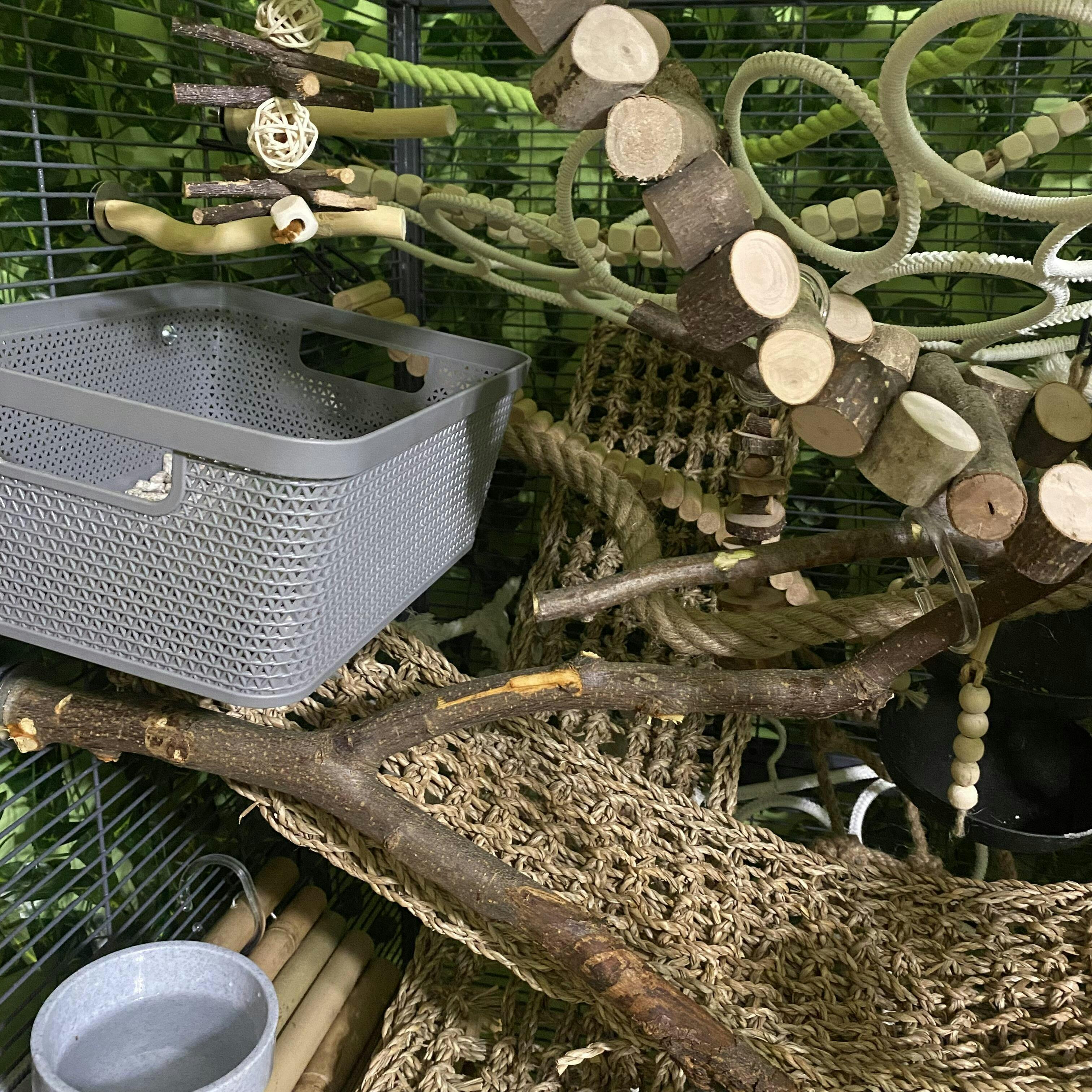 All captive animals require accessories to provide entertainment in the cage, especially when left alone for extended periods. It is imperative for mental and physical health to have an array of stimulating toys available at all times. Add 2-3 accessories to your pet's cage and switch them out regularly for continued stimulation. Always supervise pets at play. Thoroughly inspect toys and accessories on a daily basis. Wipe product clean with a damp soft cloth as needed before returning it to the cage.