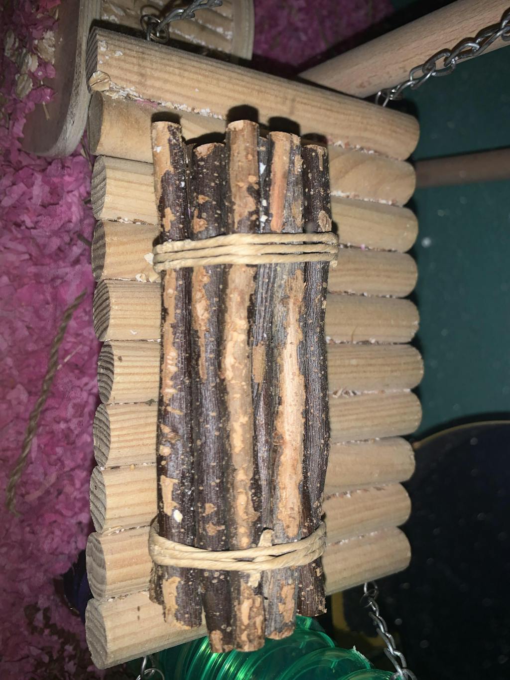 Always supervise pets at play. Thoroughly inspect toys and accessories on a daily basis. Wipe product clean with a damp soft cloth as needed before returning it to the cage.