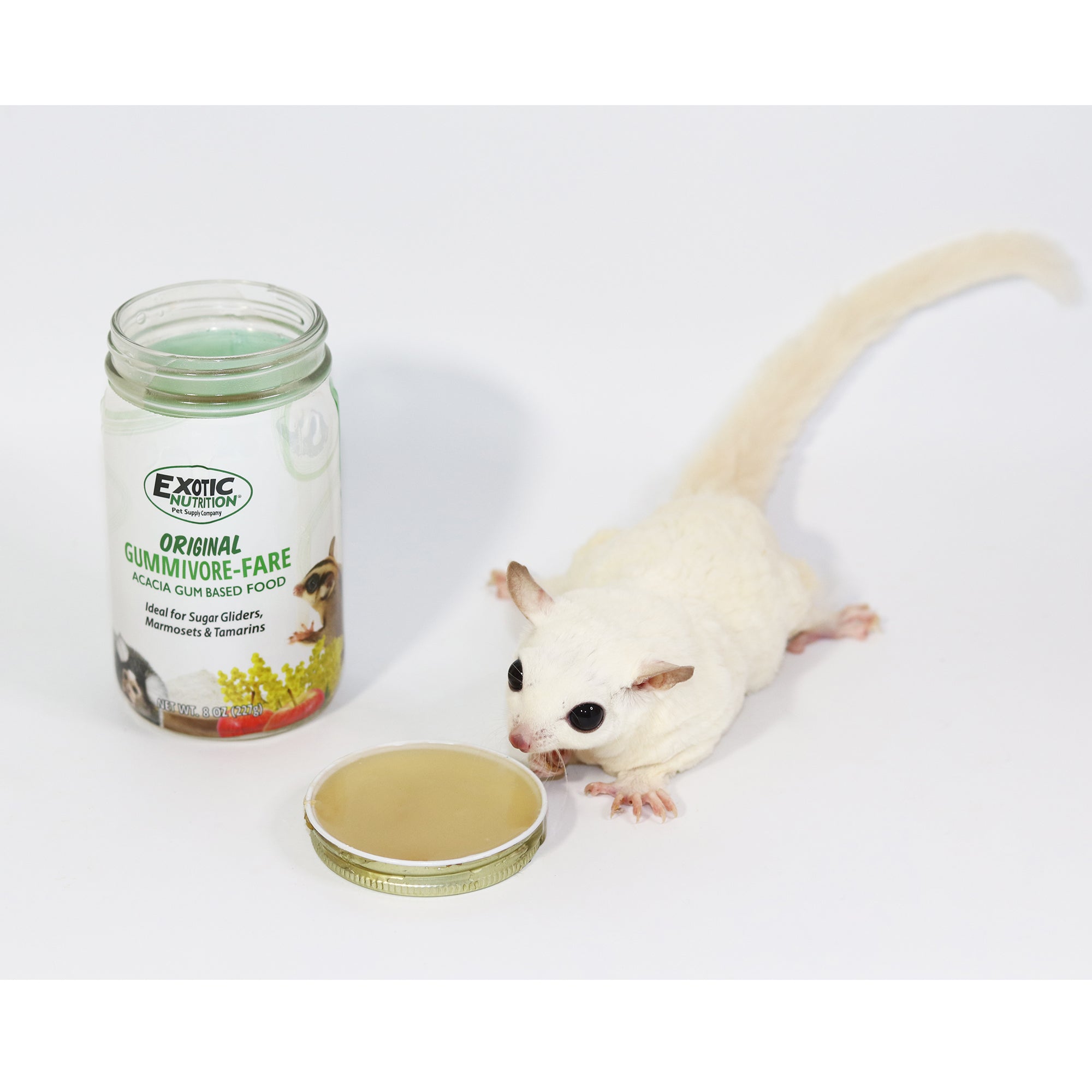 Exotic Nutrition developed Gummivore-Fare as an easy to feed, acacia gum supplemental food source for Sugar Gliders, Marmosets, Tamarins, and other gum-feeding mammals (gumivores).
