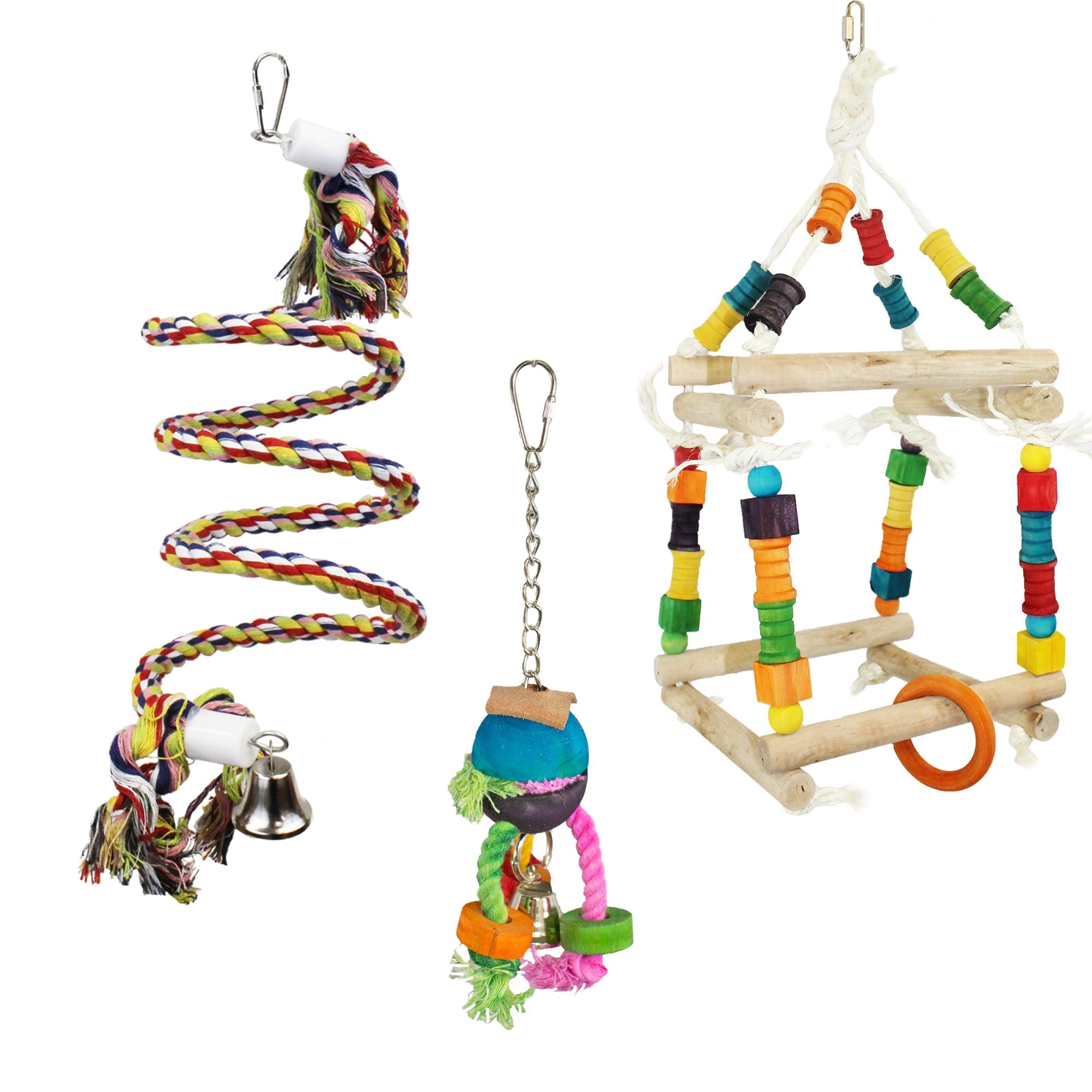Exotic Nutrition's Rainbow Accessory Bundle includes a combination of three popular cage accessories: Jungle Gym, Crazy Legs, and Bungie Spring. These cage accessories offer pets a fun experience while stimulating a natural forest environment. More details including dimensions can be found on each product's individual page.