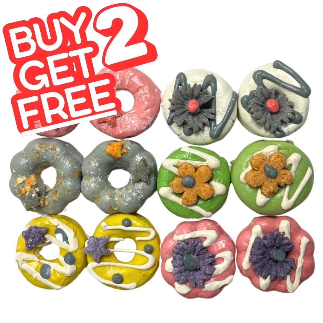 Dozen Delights are the perfect bite-sized treat for your small furry friends! Each package contains a dozen individually wrapped oat donuts, specially crafted for rabbits, guinea pigs, hamsters, rats, and other small animals. These delightful, nutritious treats are made with wholesome ingredients to keep your pets happy and healthy. Ideal for rewarding or enriching your pet's diet, Dozen Delights offer a tasty and fun way to show them you care!